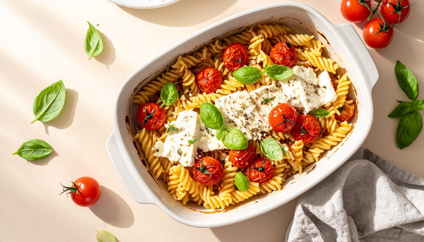 The tomatoes roast until they’re soft and jammy, the feta turns warm and creamy, and everything comes together into a silky sauce that coats the pasta beautifully. It’s rich without being heavy, simple without being boring, and the kind of dinner that feels especially good when you want something warm, colorful, and low-stress.