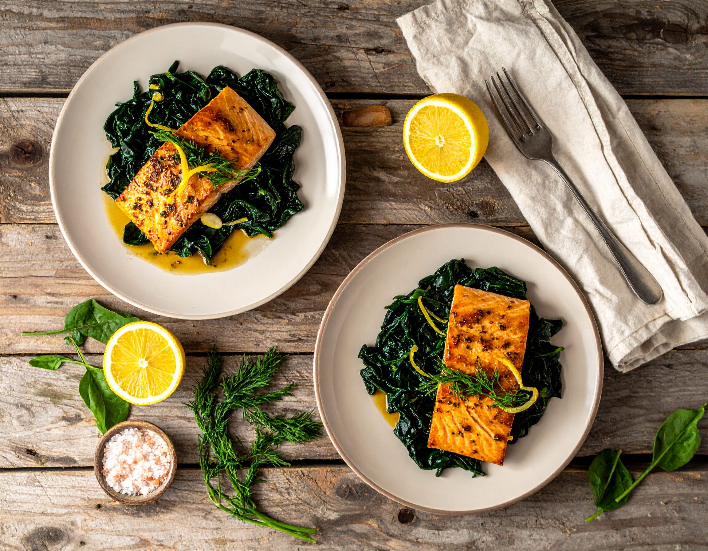 Salmon has a reputation for being either overcooked or intimidating. This recipe fixes both problems. One pan, twenty-five minutes, and a method that produces salmon with a properly seared crust and a just-cooked center every single time. The garlic spinach beneath it does double duty as both vegetable and sauce.