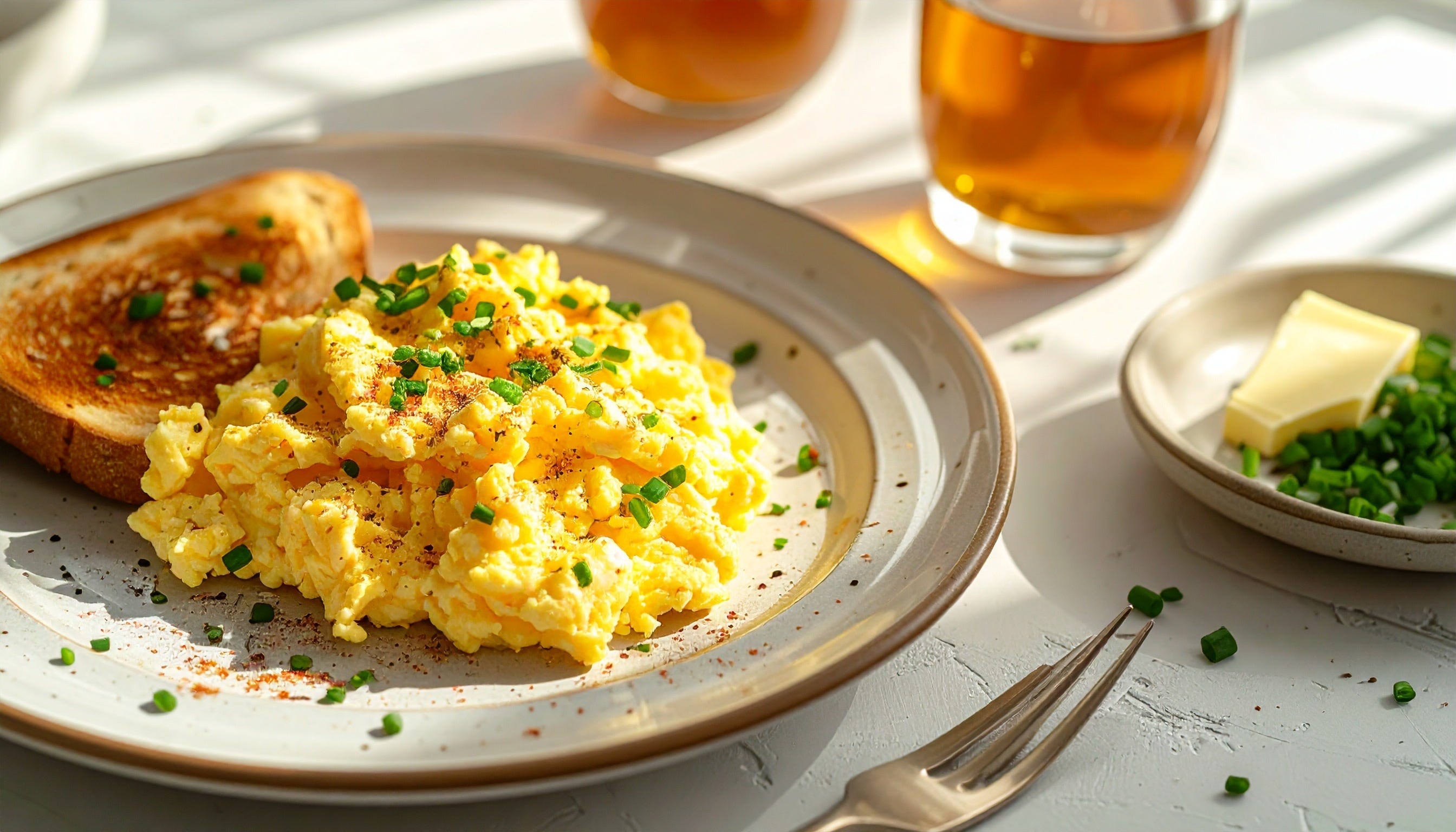 Cooked slowly, the eggs turn velvety and delicate, with tender curds that feel far richer than a short ingredient list would suggest. Add warm toast with a little butter, and breakfast instantly feels more complete. It is simple food, but it never feels plain.